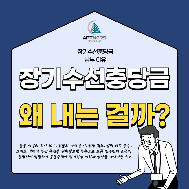 - 장기수선충당금은 이러한 위험을 예방하고, 입주민들의 안전을 확보하는 데 사용됩니다.