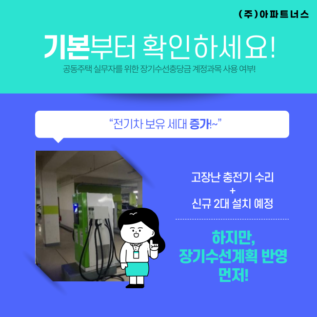 전기차충전기 수리 및 신규 설치, 장기수선충당금 계정과목으로 반영해야 할까요?
