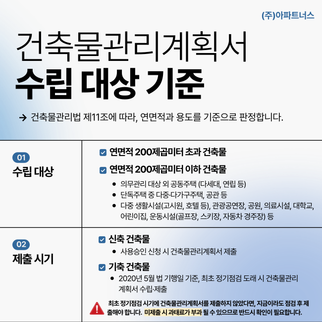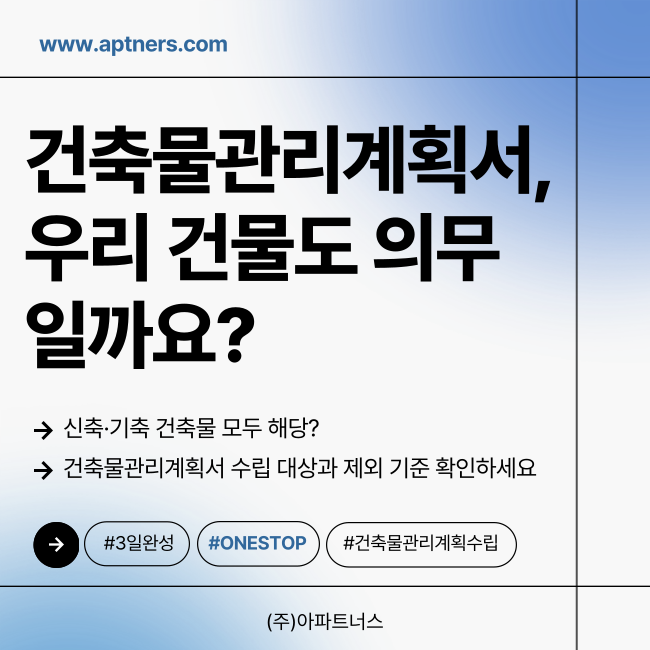 (주)아파트너스는 건축물관리계획 수립 대행 전문 기업으로서