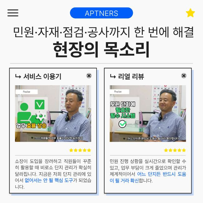 아파트너스 AFMS시설관리시스템 도입 후 실제 현장에서 어떤 변화가 있었는지 직접 들어보겠습니다.
