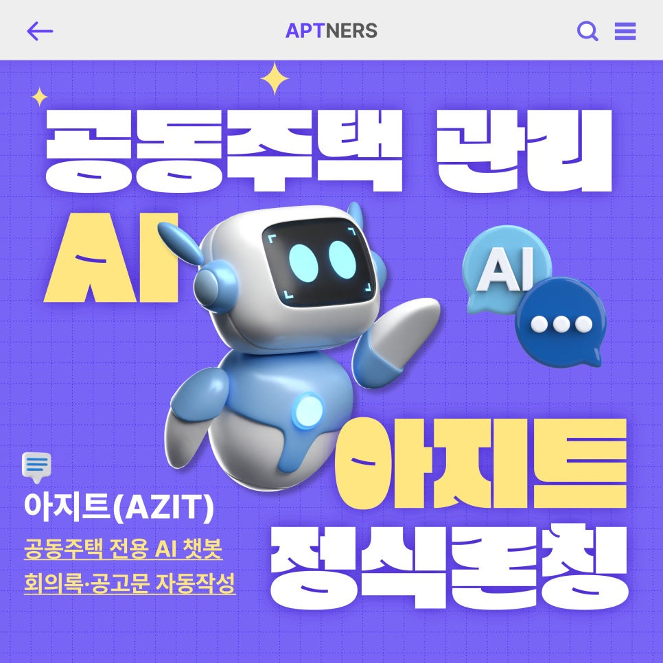| 아파트너스, 아지트(AZIT) 업데이트로 공동주택 문서 자동화! 공고문·회의 준비도 AI로 (0) | 2025.12.10 |