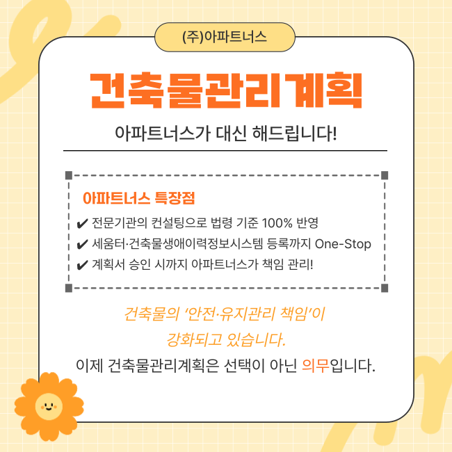 아파트너스는 건축물관리계획 수립을 전문적으로 대행하는 기관으로,
