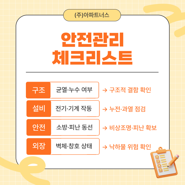 건축물관리계획의 실효성을 높이기 위해선 체계적인 정검 항목 설정이 필수입니다.
