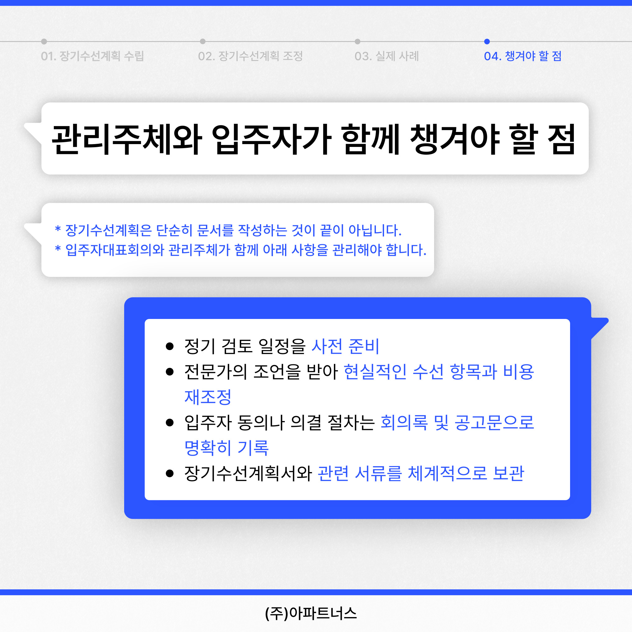 장기수선계획은 단순히 문서를 작성하는 것이 끝이 아닙니다.