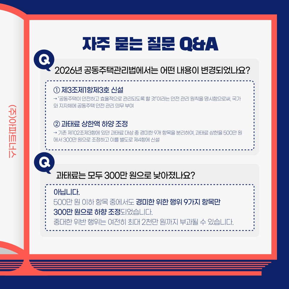 Q1. 2026년 공동주택관리법에서는 어떤 내용이 변경되었나요?