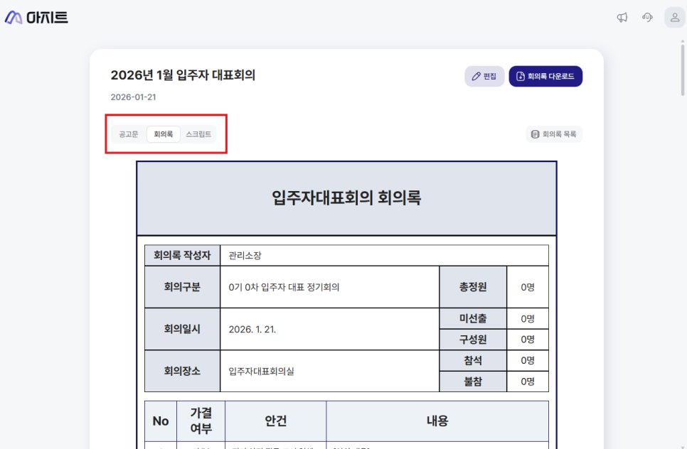 입주자대표회의 회의록을 정확하고 빠르게 작성하는 방법을 안내드립니다.